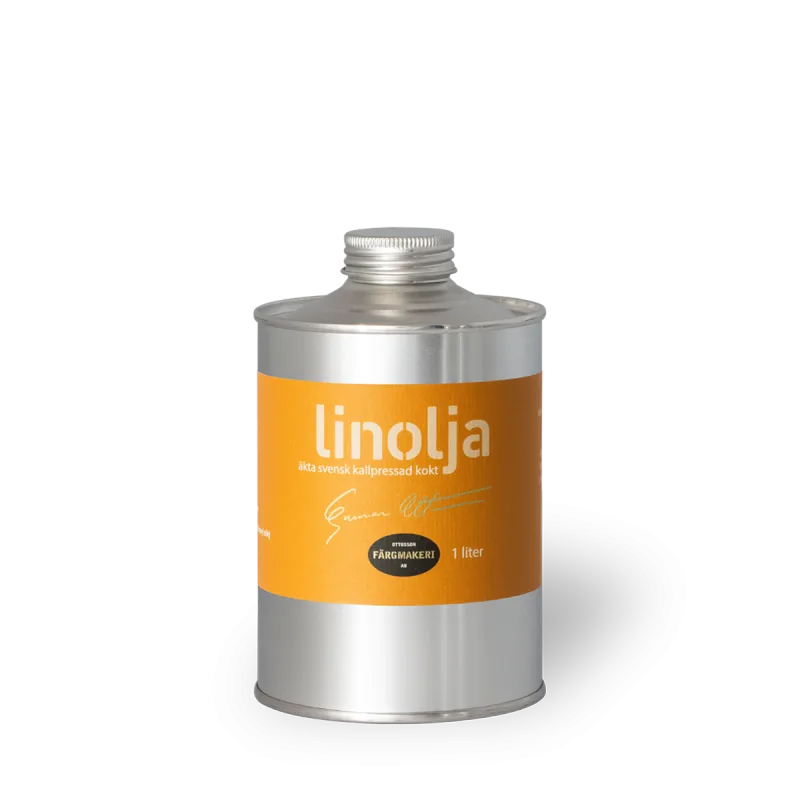 Swedish cold-pressed raw linseed oil of the highest quality. The oil is stored for at least 6 months after being pressed so that all slime can settle. It is a natural treatment without any chemical additives. Purified linseed oil is then decanted to another storage tank.